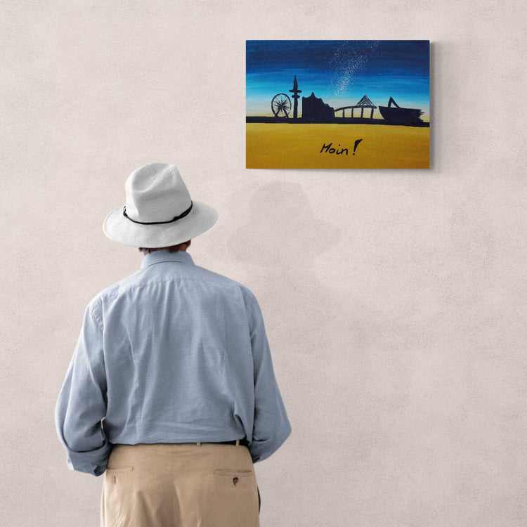Eine wunderbare bunte Malerei, die als Wanddekoration verwendet werden kann. Moin aus Hamburg! Perfektes Geschenk für Seemänner, oder die in Hamburg oder einer anderen Stadt in Norddeutschland leben. Es kann ein großes Einweihungsgeschenk sein! Die Gemälde sind Acryl auf Leinwand und werden in höchster Qualität von professionellen Künstlern nur für dein Zuhause oder Büro erstellt! Diese einzigartigen Kunstwerke sind einzigartig in ihrer Art!