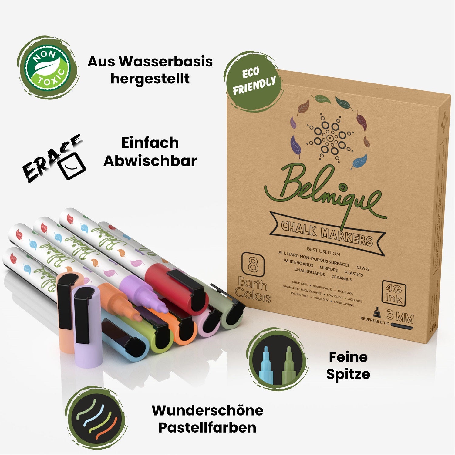 FLEXIBLE NUTZBARE MARKER - Unsere Marker sind die besten ihrer Klasse! Wir verwenden eine robuste Spitze und leuchtende Pastellfarben, die auf einer Vielzahl von glatten Oberflächen verwendet werden können. Von Fenstern bis zu Whiteboards, von Kreidetafeln bis zu Glas - unsere Marker sind flexible!