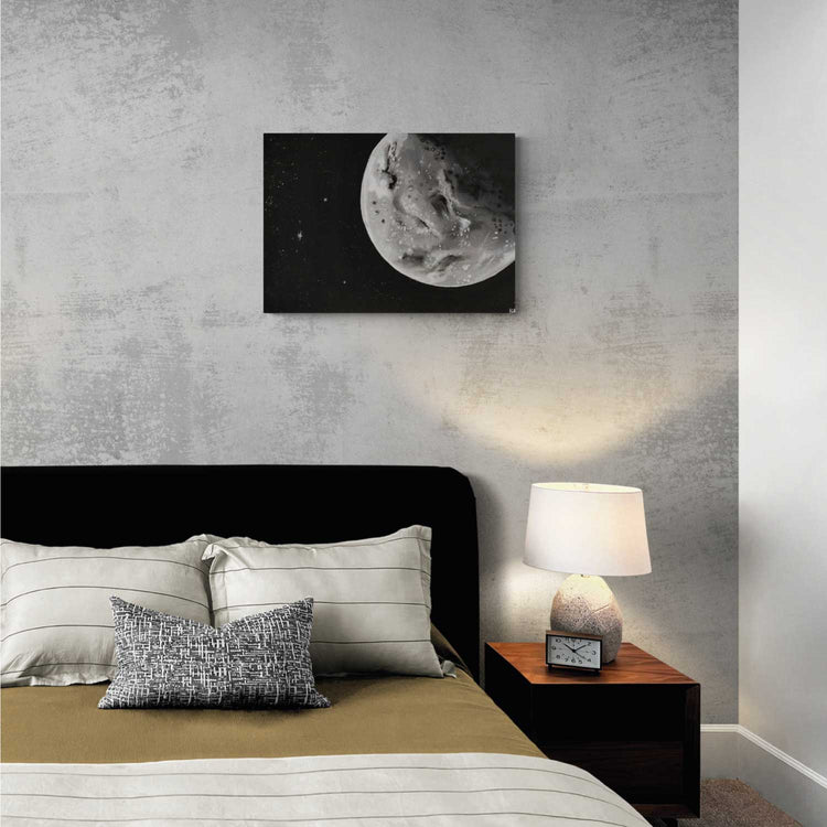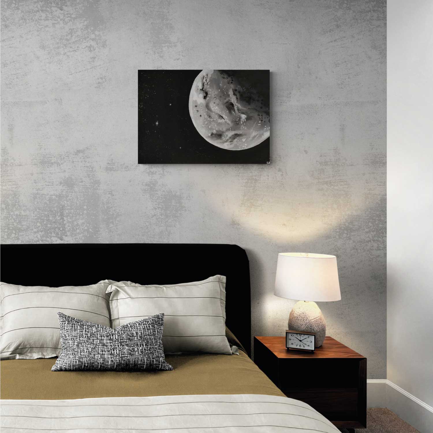 Dieses Gemälde eignet sich daher perfekt für die Dekoration von Wohn- oder Schlafzimmern, in denen Sie eine entspannende Atmosphäre mit einem Hauch von Geheimnis schaffen wollen.