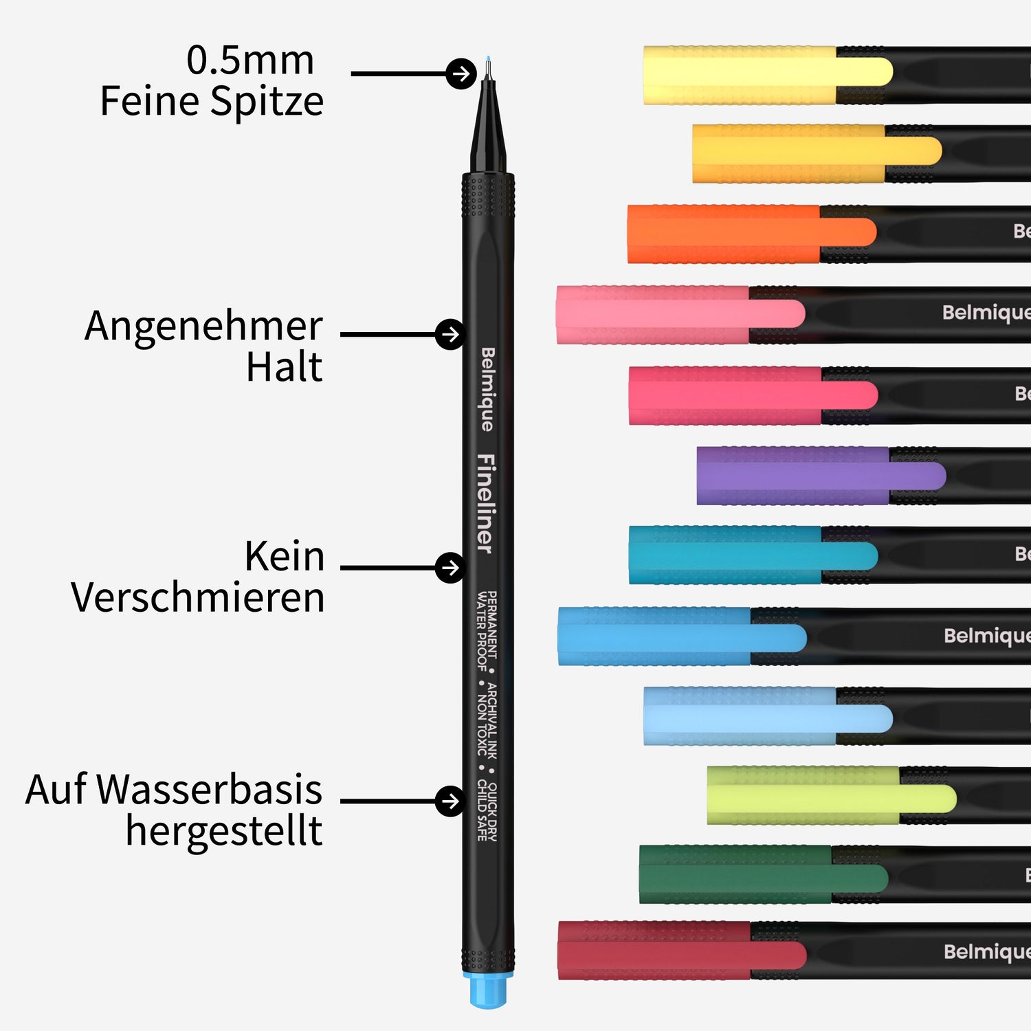 AUSGEWÄHLTE FINELINER FARBEN - Du suchst nach Finelinern, die wirklich aus der Masse herausstechen? Dann bist du bei uns genau richtig! Unsere Belmique Fineliner haben nicht nur eine unglaubliche Farbintensität, sondern auch eine Farbleuchtkraft, die beeindruckend ist. Wir haben jedes Detail sorgfältig ausgewählt, um sicherzustellen, dass jede Farbe in diesem Set perfekt ist. Sowohl die kühlen als auch die warmen Farbtöne werden dich begeistern und dich dazu inspirieren, kreativ zu werden.