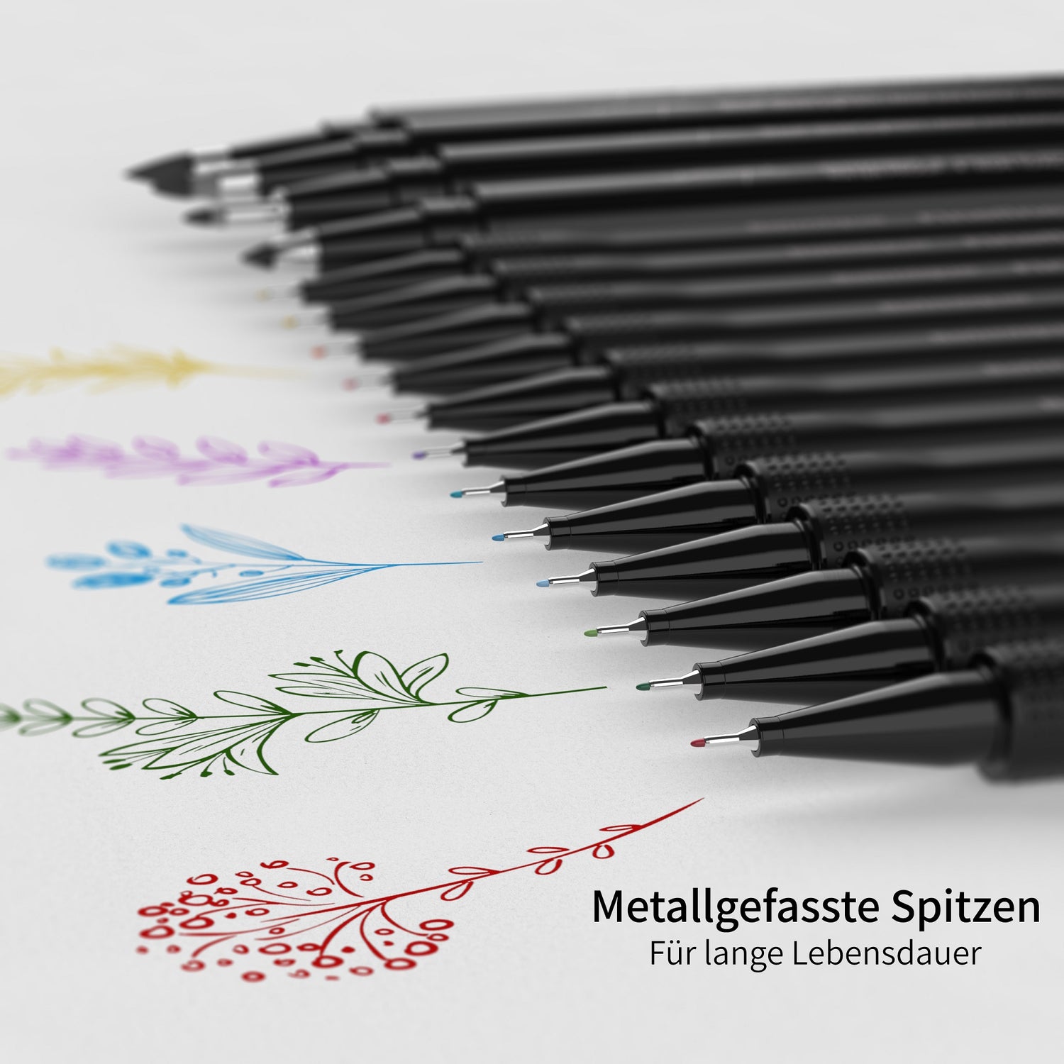 IDEAL FÜR PRÄZISES ARBEITEN - Die feinen Spitzen dieser Zeichenstifte gleiten mühelos über das Papier und ermöglichen es dir, präzise Linien und Formen zu erzeugen. Egal ob für Kalligrafie, Schriftzüge oder technische Zeichnungen - mit diesen Finelinern kannst du deine Ideen präzise umsetzen.