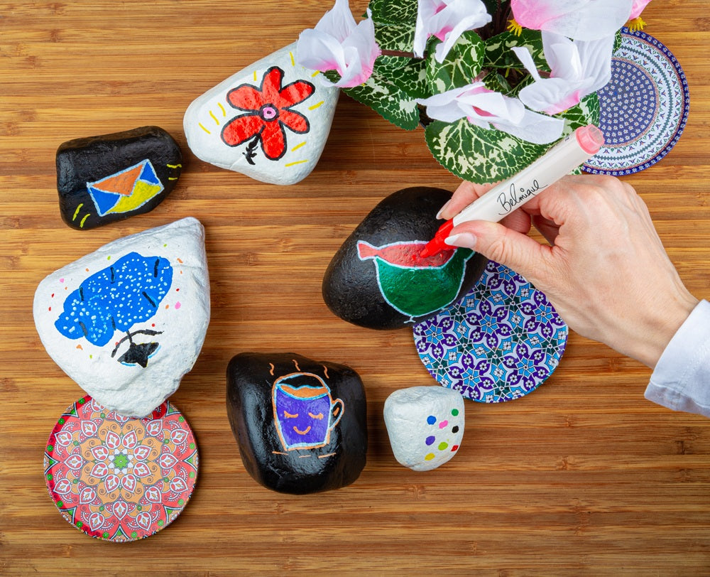 Mit unseren Acrylstiften wird jeder Stein zum Unikat. Für glatte und raue Oberflächen, feine Linien und große Wirkung.