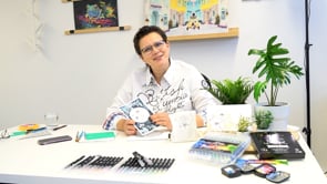 In diesem Kreativ Workshop zeige ich Dir Schritt für Schritt, wie Du in Kombination mit glitzerner Aquarellfarbe und dem Einsatz von einem wasserfesten Fineliner , dieses wunderschönen Muster als Hintergrund und die Anemonen vor einem Kreis oder auch Mond gestaltest. Die Skizze für die Blumen habe ich Dir bereits vorbereitet und Du kannst sie in Ruhe und in Deinem Tempo auf Dein Aquarellpapier übertragen. Wir gestalten gemeinsam einen besonderen Hintergrund und sparen dabei den Innenkreis bewusst aus. Sobald der Hintergrund getrocknet ist, kannst Du die florale Skizze mit dem Fineliner nachmalen und noch einen Aquarell Hintergrund der Blumen andeuten. Besonders schön macht sich auch ein Handlettering im unteren Bereich der Komposition. Deiner Kreativität sind keine Grenzen gesetzt. Du könntest einen Platz im Hintergrund dafür im Vorwege abkleben oder im Nachhinein gestalten, ausschneiden und mit 3D Aufklebern auf dem Bild befestigen.