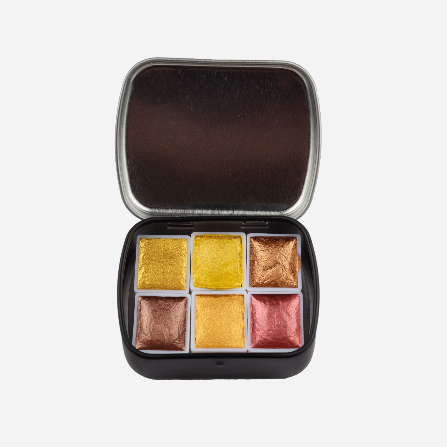 Aquarellset mit 6 Metallicfarben: Mit dem Aquarell-Metallic-Set sind Ihrer Fantasie und Ihrem Talent nur Grenzen gesetzt. Dieses Set besteht aus 6 Metallic-Farben, die Ihren Bildern einen kräftigen, lebendigen Effekt verleihen.