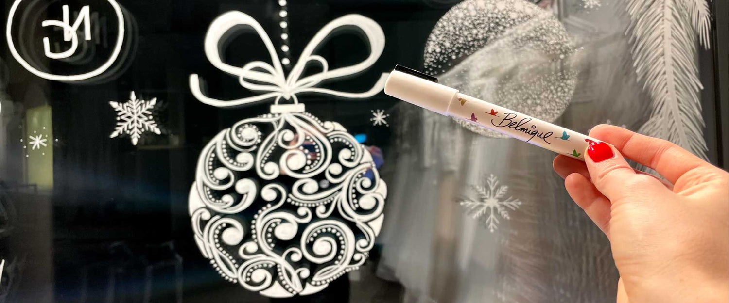 Hol dir die festliche Stimmung nach Hause! Egal, ob du filigrane Christbaumkugeln, Sterne oder Schneeflocken malen möchtest: Unsere Kreidemarker bieten die Präzision, die du für detaillierte Weihnachtsmotive brauchst. Die hohe Deckkraft sorgt für leuchtend weiße Designs, die auf jedem Fenster zum Hingucker werden – und nach den Feiertagen einfach abgewischt sind.