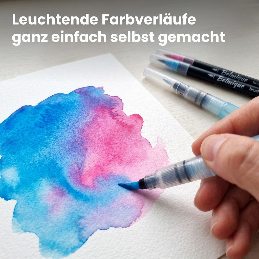 Inklusive zwei praktischer Wassertankpinsel: Einfach mit Wasser befüllen und direkt loslegen. Ideal, um Farben sanft zu verblenden oder stimmungsvolle Aquarellverläufe zu gestalten ganz ohne zusätzlichen Pinsel oder Wasserbecher. Du brauchst nur Papier und ein bisschen kreative Lust.