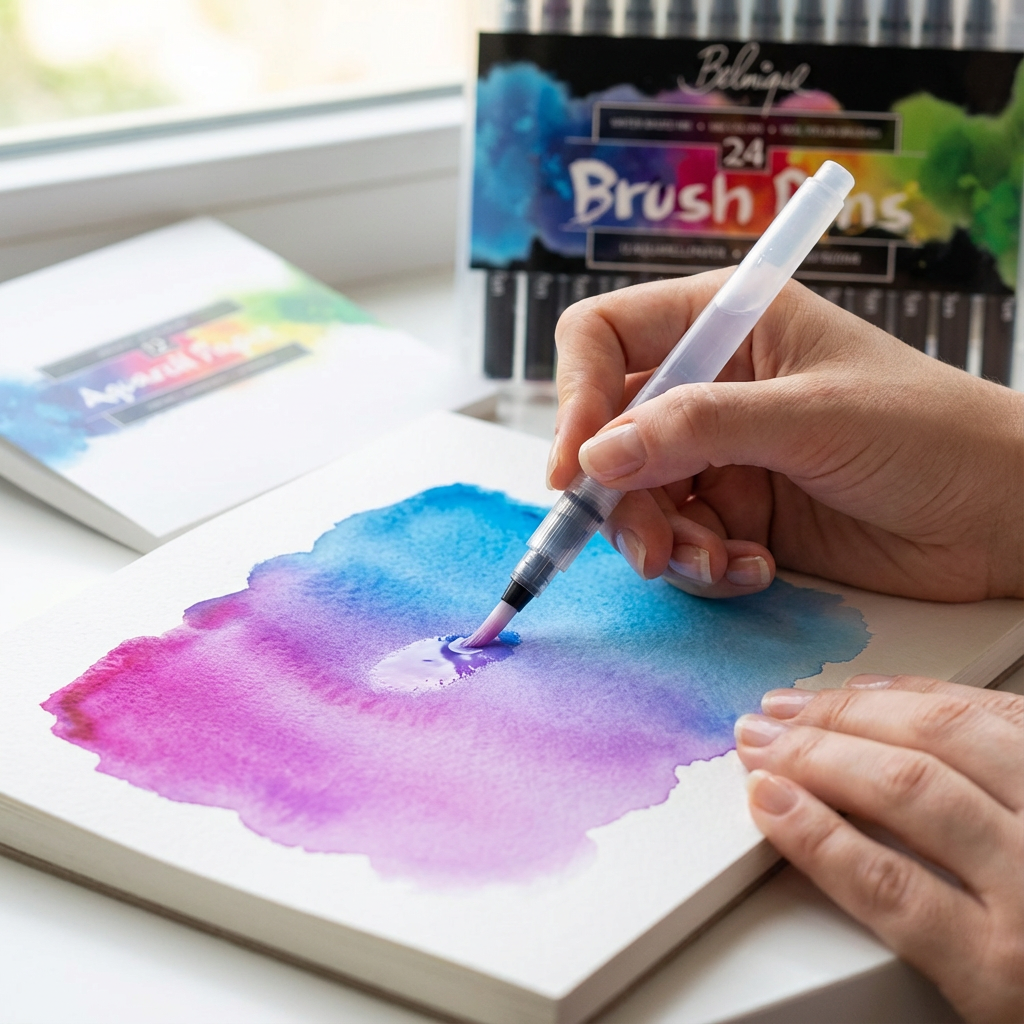 Du willst einfach loslegen ohne großes Setup, ohne kompliziertes Material? Dieses Set gibt dir 24 wunderschöne Farben, die direkt Spaß machen. Die Pinselstifte liegen gut in der Hand, haben flexible Spitzen und machen alles mit: feine Linien, kräftige Flächen, ruhige Aquarellverläufe. Ideal fürs Journaling, Malen oder einfach mal Abschalten zwischendurch.