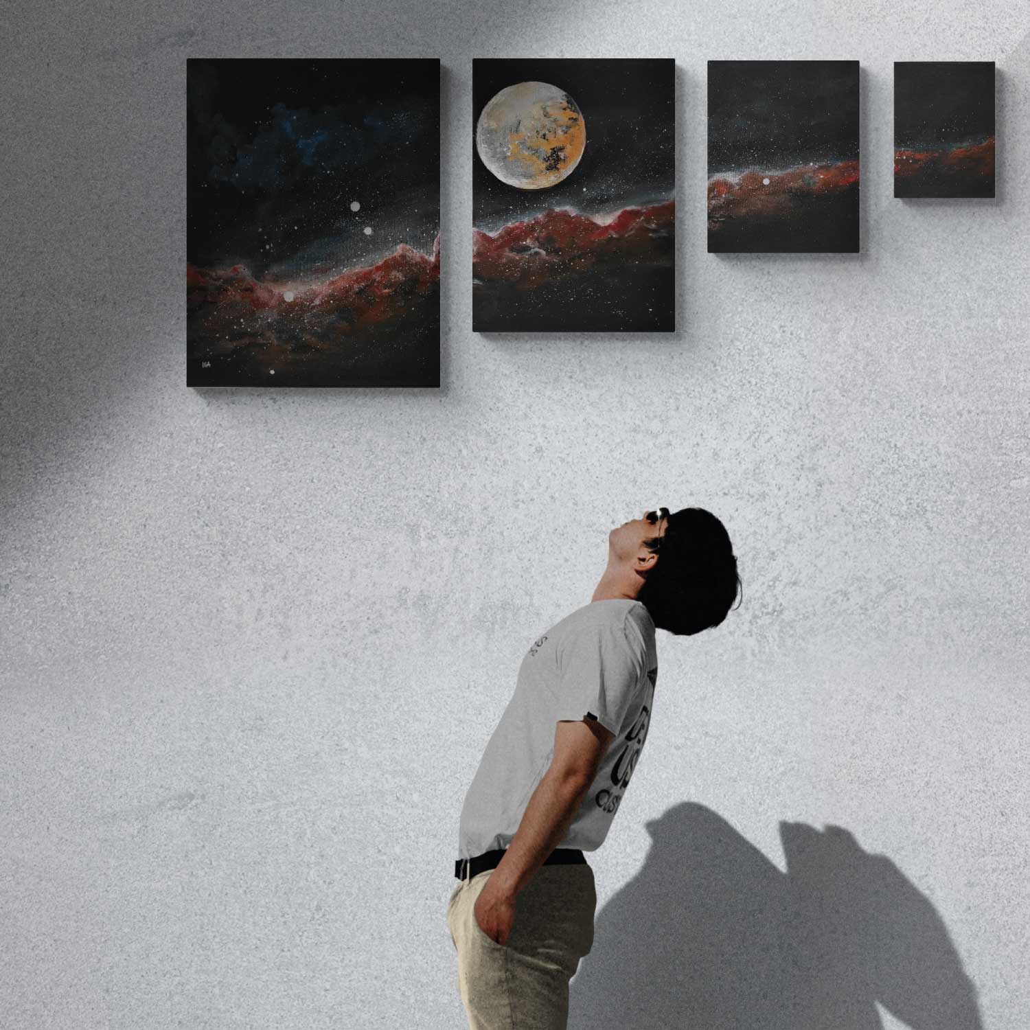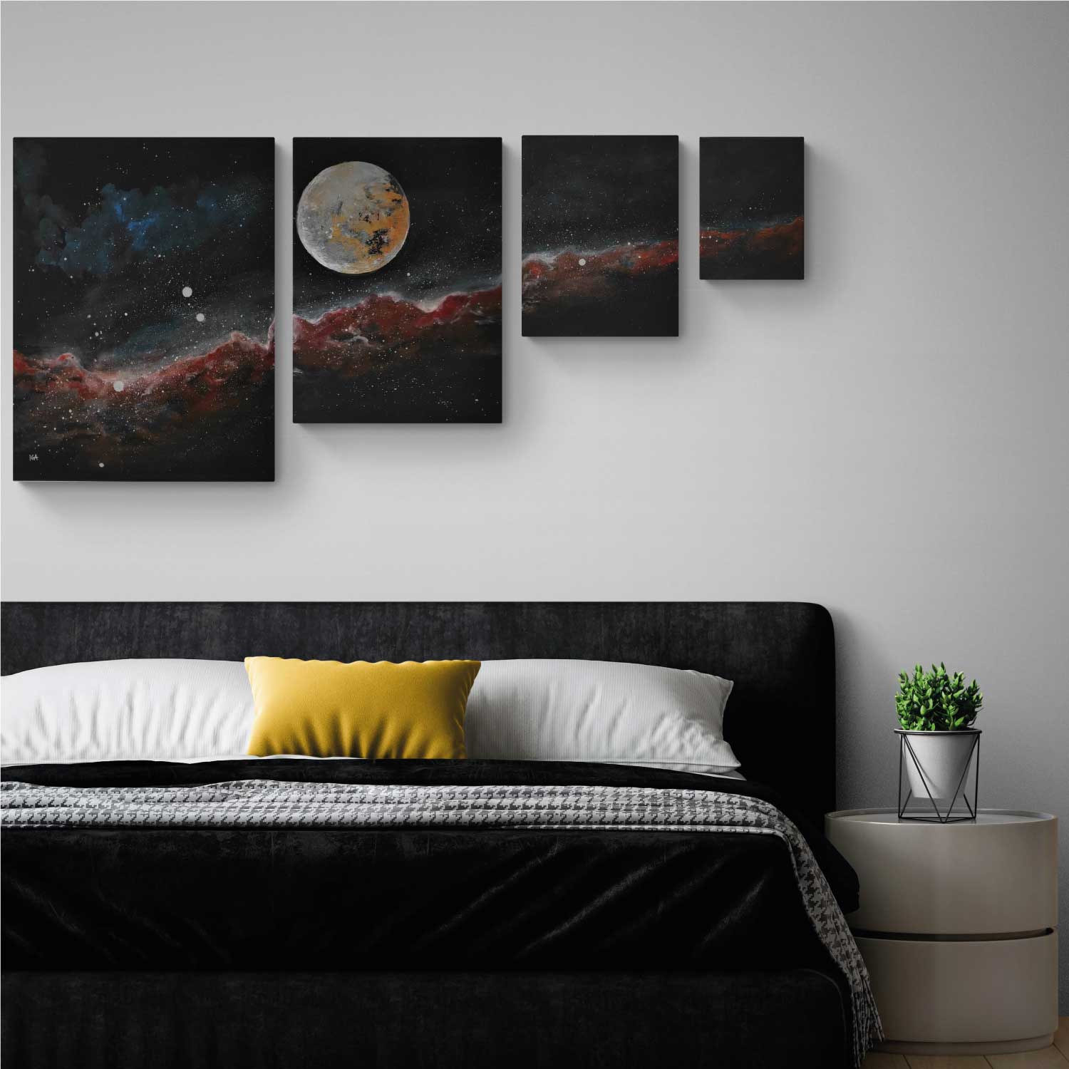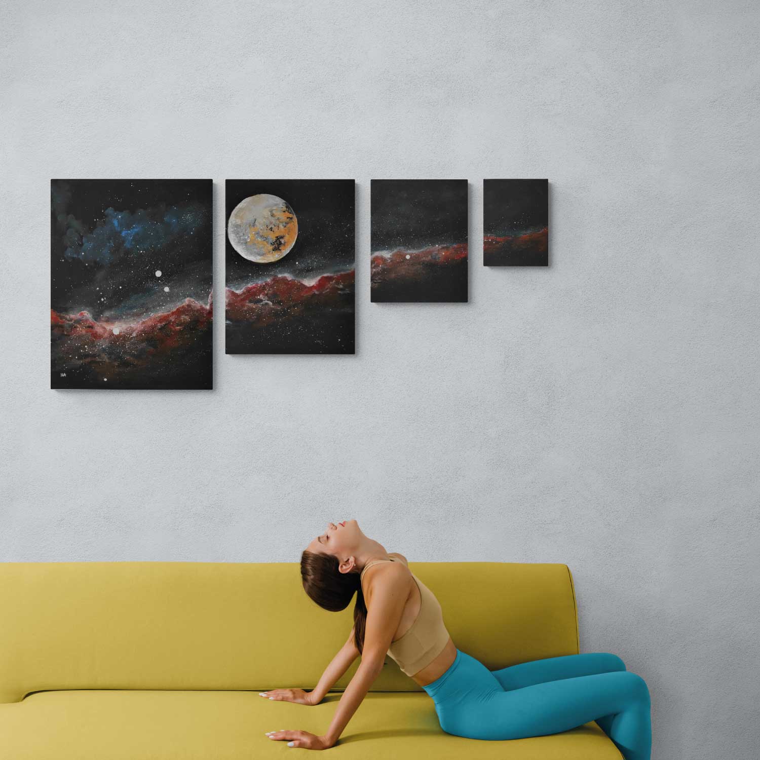 4 Teile Acrylmalerei, handgemalt mit Künstlersignatur